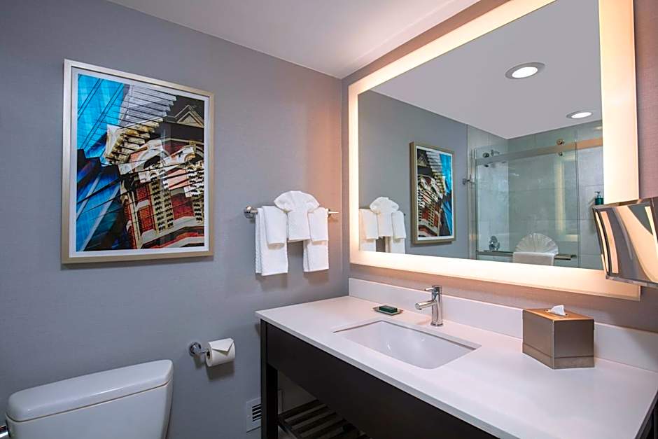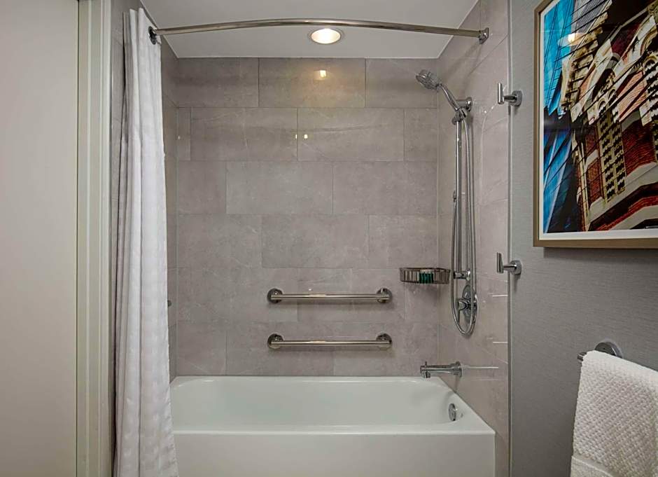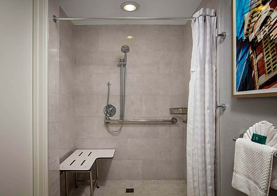 This disability access room comes with a visual fire alarm, door alerts and phone alerts. It also features a 42-inch HDTV with HBO film channels and a laptop safe.